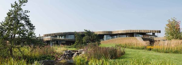 總部位于柏林的J. Mayer H.工作室,在莫斯科郊外一個廣闊的場地,為一個家庭設計了一套私人住宅。這個龐大的項目總建筑面積為5300平方米,致力于創造一種建筑語言,使景觀和建筑環境之間的界限變得模糊。結合了覆蓋綠植的屋頂和有機起伏的形式,住宅基本上融入了圍繞它的連綿起伏的丘陵。
