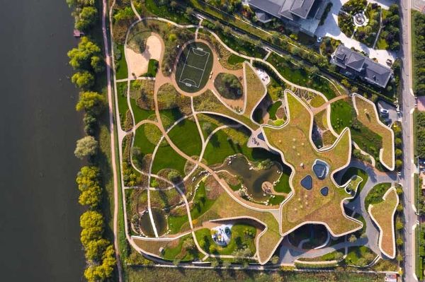 ?綠色屋頂和密集的地板不僅僅是為美觀而設計,它們還通過表面蒸發、加熱和冷卻的熱緩沖能力提供了更好的室內氣候。這座住宅的一側還與莫斯科瓦河接壤,但是建筑師在新建筑與水之間留出足夠的距離。總體而言,考慮到家庭住宅的巨大比例,J. Mayer H.的設計有效地創建了一個與場地相融合的建筑,就像偽裝成周圍環境的動物一樣。N.N.住宅探索了自然和建筑形式之間的界限。