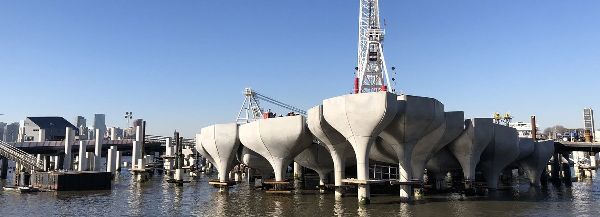 Heatherwick工作室與景觀設計師Mathews Nielsen合作的項目“55號碼頭公園” 的建筑形象已經浮出水面,這座占地2.4英畝、引人注目的公共公園已經在紐約哈德遜河(hudson river)初具規模。碼頭于2014年首次宣布,并在兩年后進行了建設,預計該碼頭將于2021年向公眾開放。它出人意料的地形包括由樁支撐的混凝土罐,根據圖片顯示,這些混凝土罐似乎即將完工。