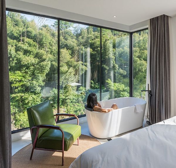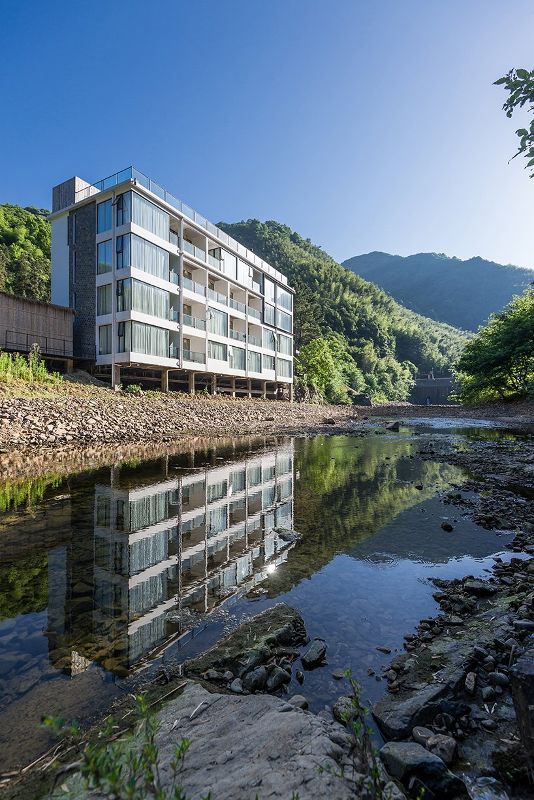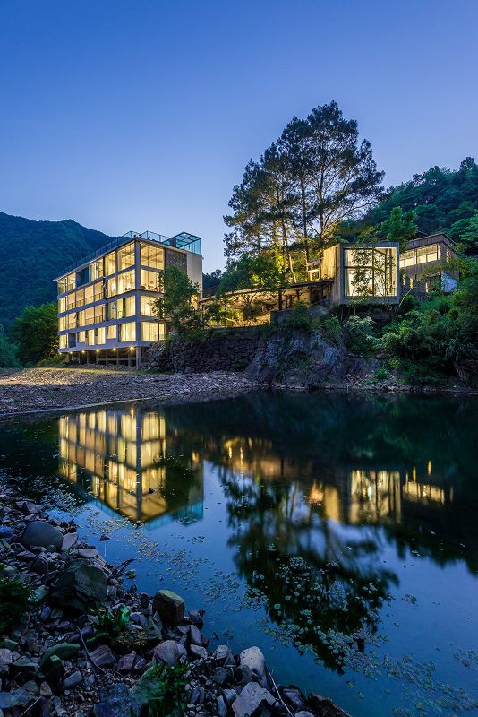 在中國安徽一片偏僻的竹林中,上海的JAXDA公司設計了覓源酒店,該項目是一家擁有22間客房的精品酒店,游客可以在這里感受時間的流逝,并與大自然有著密切的聯系。該場地隱藏在安徽山脈之間,與大壩的河口及其河流相鄰,周圍有徒步旅行的足跡,可以探索竹林。
