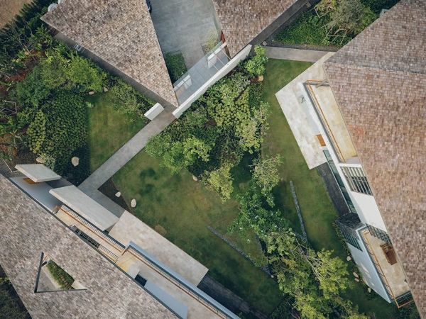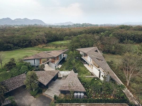 Stu/D/O建筑事務所設計的滑翔別墅由兩棟兩層高的住宅組成。項目建在泰國khao-yai山旁邊的一塊土地上,頂部為三角形屋頂,從視覺上將現場的各個結構連接在一起。這兩棟別墅分別位于場地的左右邊界,以使它們之間的景觀最大化,并確保每位居民有足夠的私密性,同時防止在公共道路的盡頭直接看到房屋。
