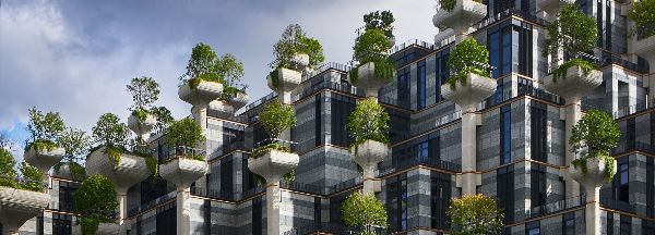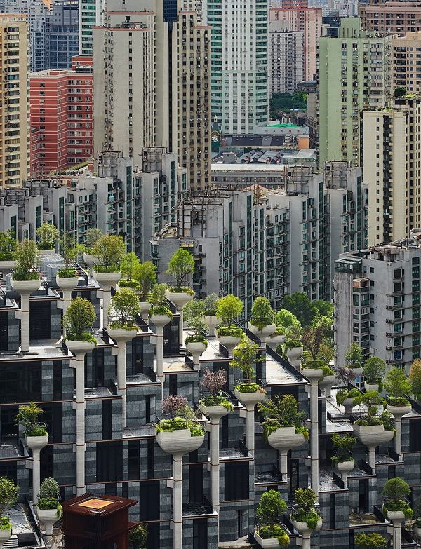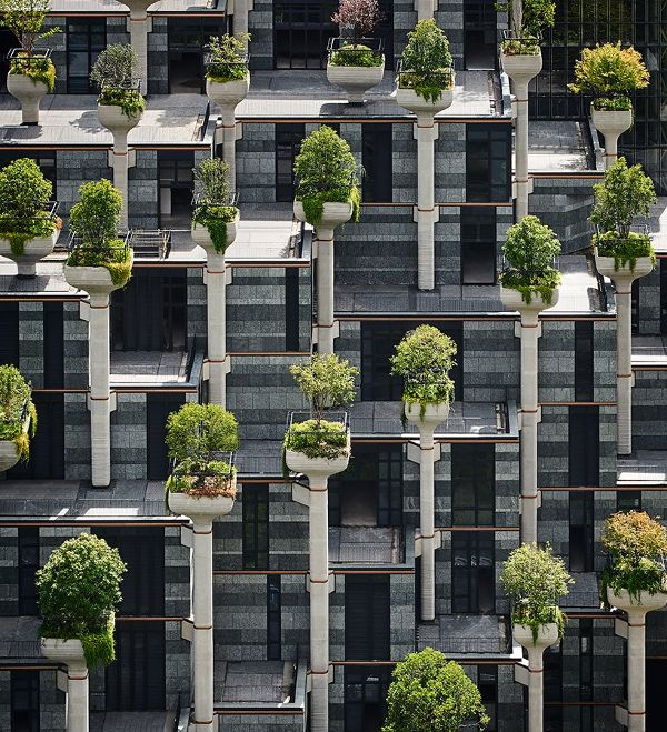 該項(xiàng)目由Heatherwick工作室為開(kāi)發(fā)商天安中國(guó)設(shè)計(jì),該項(xiàng)目不僅被視為建筑物,而且還被視為地形。“1000棵樹(shù)”以?xún)勺鶚?shù)木覆蓋的山的形式,由成百上千的結(jié)構(gòu)柱組成,這些結(jié)構(gòu)柱以大型種植園的形式出現(xiàn),每個(gè)柱子都簇?fù)硪豢脴?shù)。這些全部記錄在由朱青巖拍攝的該項(xiàng)目的最新照片中。