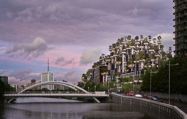 “1000棵樹(shù)”于2015年首次亮相,是一項(xiàng)占地30萬(wàn)平方米的綜合用途開(kāi)發(fā)項(xiàng)目,位于上海郊區(qū)。該項(xiàng)目由Heatherwick工作室設(shè)計(jì),位于距市中心20分鐘路程的住宅區(qū),緊鄰M50藝術(shù)區(qū)和一個(gè)公園。該項(xiàng)目包括兩個(gè)地塊,由一塊狹長(zhǎng)的政府地塊連接,并包括幾座歷史建筑。