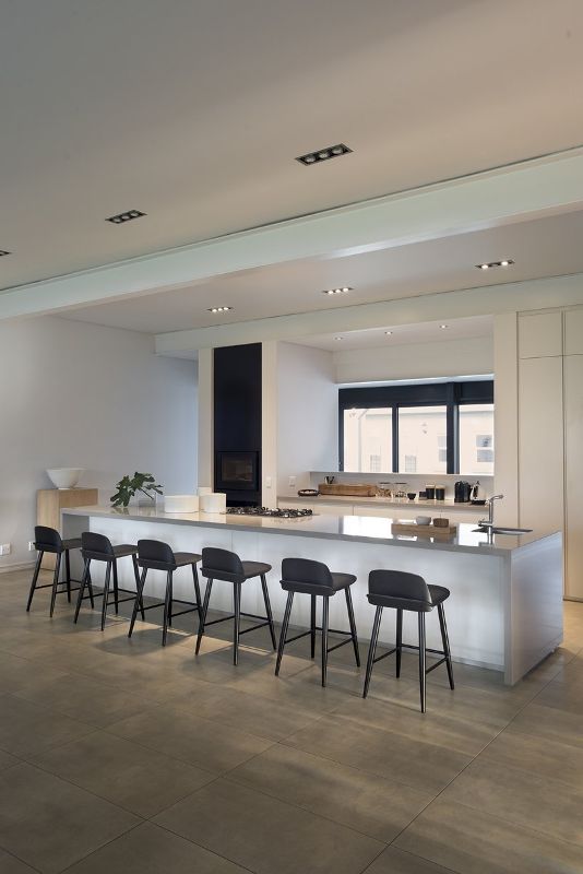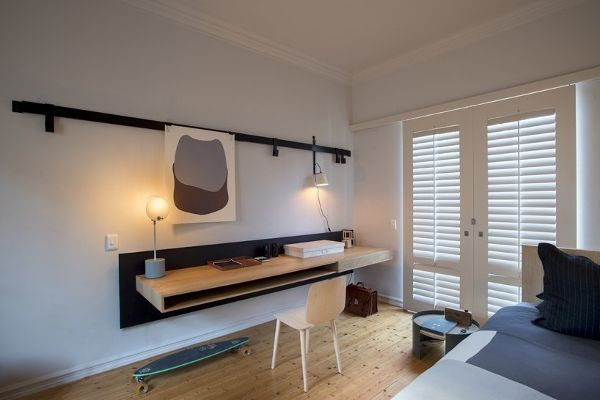 位于居中位置的廚房向起居空間和室外露臺開放,著眼于外部景觀。一張簡陋的大餐桌,由家里回收的松木天花板板制成,輔以一系列David Kurgnauw Joburg的602椅子。主臥室(仍保持其原始位置)可面朝門廊打開。新的主浴室是一個安靜的地方,推拉門可滑動打開露出一個僻靜的花園。