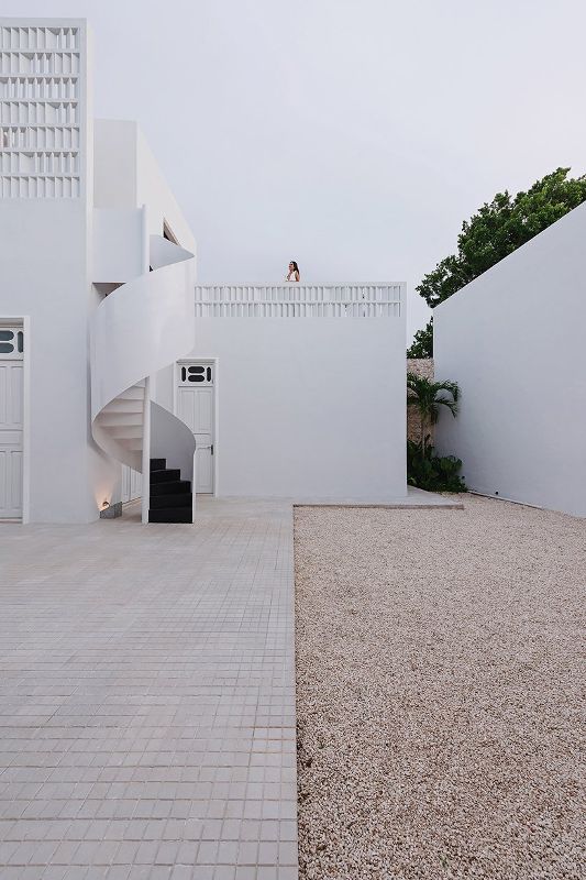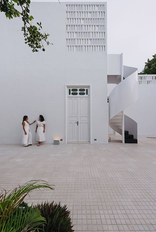 背面的廣場(chǎng)采用更現(xiàn)代的設(shè)計(jì),與傳統(tǒng)的尤卡坦殖民時(shí)期建筑風(fēng)格相得益彰。他以一面適合投影的高墻邀請(qǐng)用戶(hù)去體驗(yàn)內(nèi)部空間,并且由于入口周?chē)牟煌煨鸵约皦ι细褡拥氖褂茫峁┝藷o(wú)盡的光影游戲。