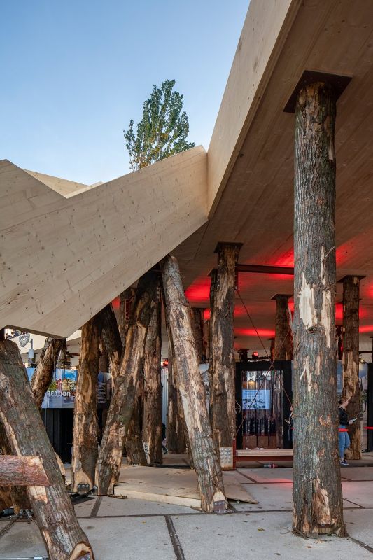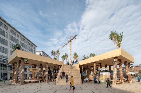 ?為了迎接2019年荷蘭設計周的到來,Marco Vermeulen工作室將“木制革命”帶到了Ketelhuisplein Ineindhoven的“生物大本營”展館。該項目使用木材建造,展示了材料的結構可能性,以迎接一個新的環保建筑時代的到來。