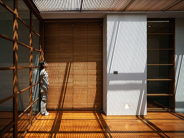 天然材料的調色板在住宅中營造出舒適而現代的氛圍。Junsekino對細節的關注也為設計增添了一層精致感。建筑師在地下室采用鋼筋混凝土結構,在底樓和上層采用鋼結構,目的是凸出長屋檐的輕薄程度,并使地下公用區域免受雨水和陽光的侵蝕。