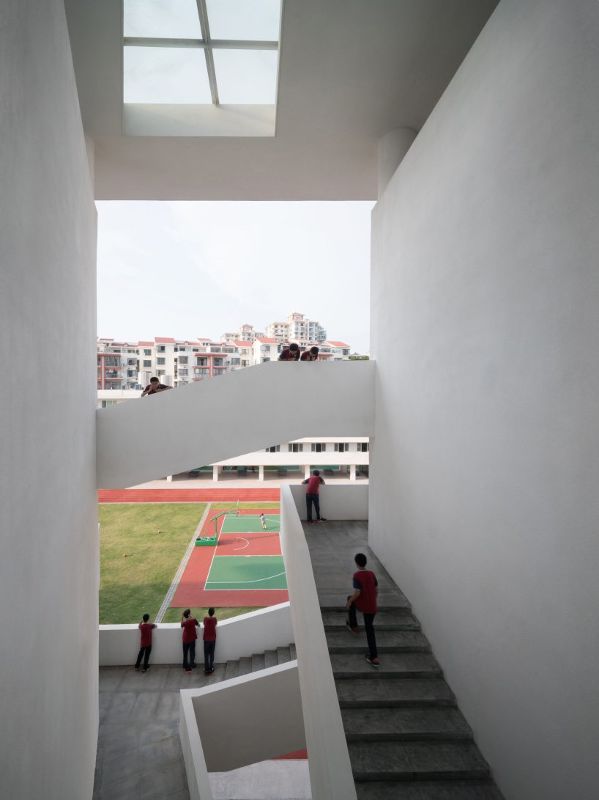 海口寰島中學(xué)位于中國海南省,由可供1200多名學(xué)生使用的教室、宿舍和食堂組成,是由跡建筑事務(wù)所(TAO)設(shè)計的,旨在營造一個鼓勵創(chuàng)造力和互動性的環(huán)境,而不是以考試為導(dǎo)向的中學(xué)。