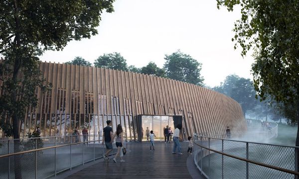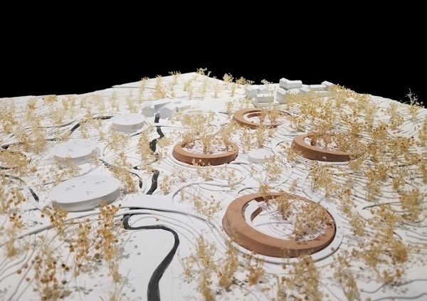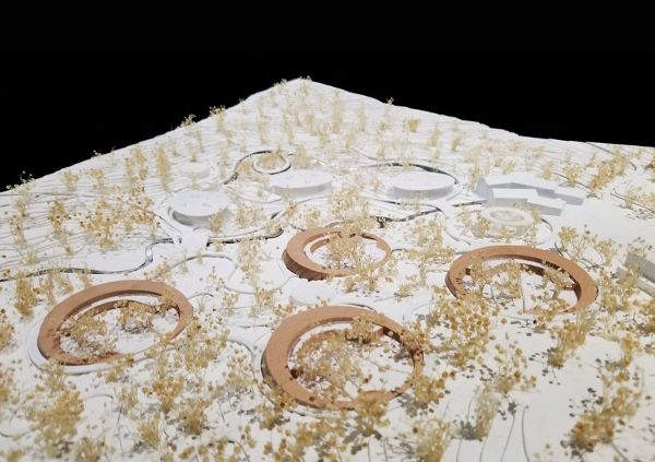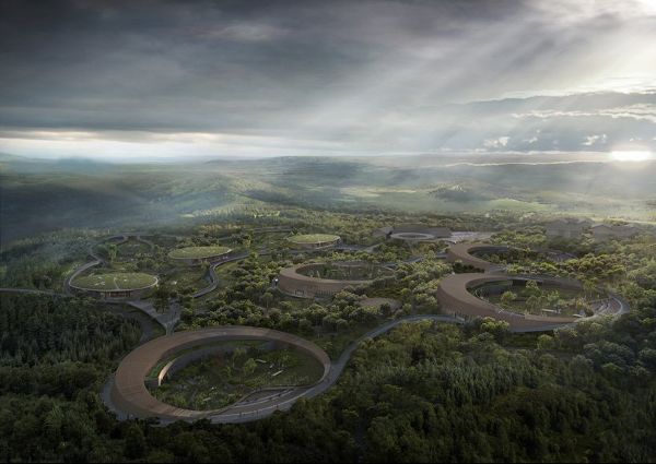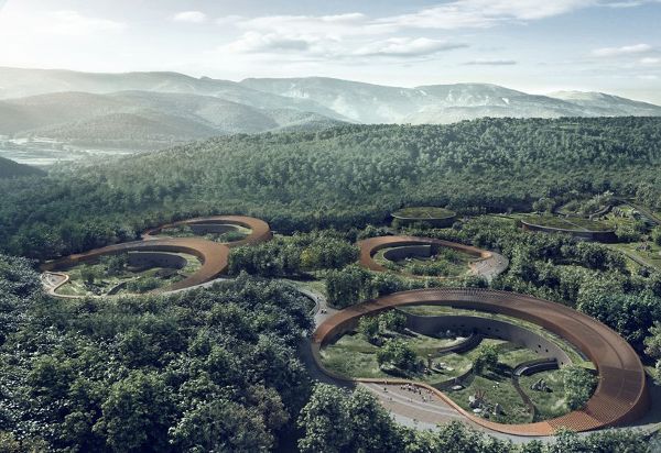 四個展館都是圓形的,有一個大的露天庭院,作為熊貓的戶外游樂場。受成都大草原的啟發(fā),這一造型由EID建筑事務(wù)所設(shè)計,創(chuàng)造出一種自然、有機的建筑,依偎在景觀中,融入到國家公園的地形中。