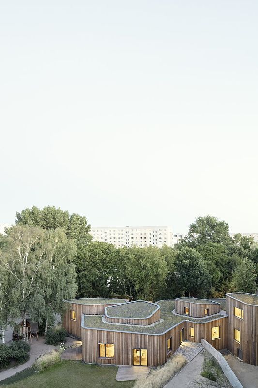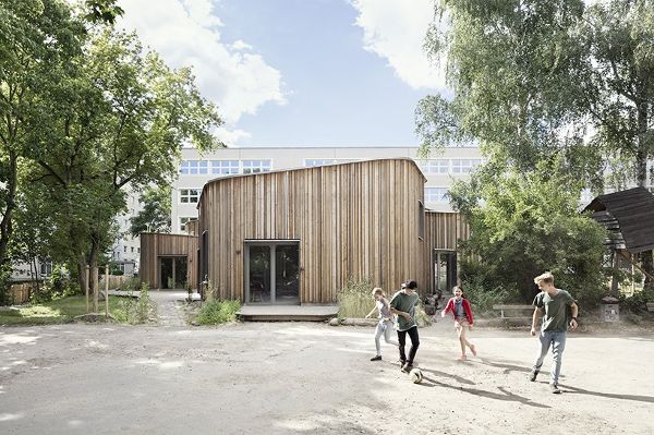 在柏林的普倫茨勞堡地區,Mono Architekten已完成了為沃爾多夫學校設計的課后托管中心。沃爾多夫學校的場地在社會主義預制結構、威廉式街區和附近猶太墓地的綠地之間形成了獨特的位置。現有的學校是一座經過全面翻新的5層預制建筑,其歷史可追溯到1970年代。