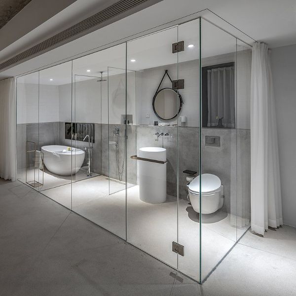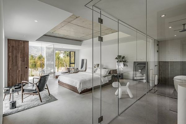 位于二樓和三樓的五間新套房設有一個私人陽臺。每間套房的落地窗在白天自然采光的同時,也將室外美景引入室內。套房內的浴室被設計成“玻璃盒子”,透明明亮的設計為客人提供了獨特的體驗。窗簾在“玻璃盒子”的外圍有一個隱藏的軌道,以確保使用浴室的客人的隱私。新建筑的外觀由具有水泥質感的砌塊元素表達。作為建筑表皮的穿孔木屏風將在未來完全安裝,從木屏風濾過的光線可以使室內空間呈現出流淌的時間感。西側庭院增加了一個游泳池,旁邊的下沉廣場最多可容納8人。