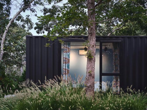 MB Architecture將一系列集裝箱堆疊在一起,在漢普頓建造了一個通風的度假屋。這座1800平方英尺的住宅位于Amagansett村一處略顯棘手的三角形林地上,環繞著一棵成熟的橡樹,并鼓勵室內外生活。