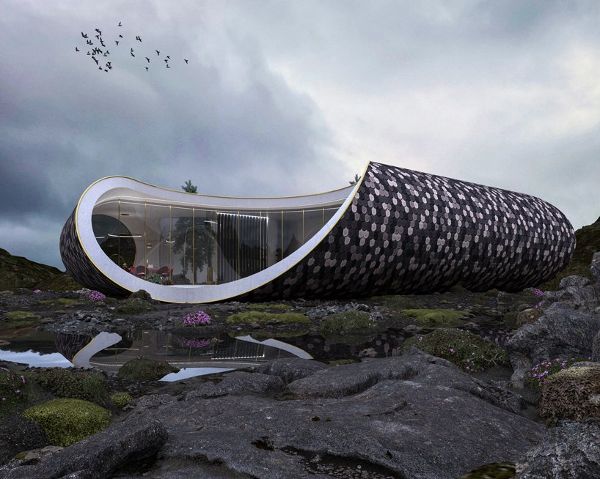 意大利建筑師Wafai設想了一個特別的“斯堪的納維亞貝殼屋”。這個項目的設計是由一個小腳印的愿望驅動的,它有著一個簡單的表達方式,讓人想起自然界中貝殼的有機形態。在他的斯堪的納維亞貝殼屋的建議下,設計師開始尋求促進對現代住宅項目采用環保和可持續的方法。這種方式可以通過集成被動冷卻,自然陽光穿透以及可循環再利用的材料等被動功能來表達。
