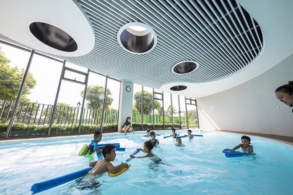 EcoKid的建筑結(jié)構(gòu)形成三個(gè)庭院,中間有一片森林,將空間與自然連接在一起。室外空間的建筑理念根據(jù)風(fēng)水五行而定——金、木、水、火、土。這些室內(nèi)和室外操場,還有體育中心和游泳池,能夠促進(jìn)孩子們的身體發(fā)育,并使孩子們形成健康的生活方式。