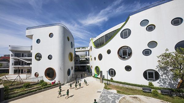 LAVA(視覺建筑實(shí)驗(yàn)室)在越南完成了一個(gè)新的生態(tài)幼兒園,它的空間能夠激發(fā)孩子的好奇心,讓孩子樂于進(jìn)行基于活動的學(xué)習(xí)和與自然的互動。該建筑位于越南河內(nèi)附近的榮市,被稱為“EcoKid”,它是一座三層的半圓形建筑,三層建筑通過橋梁相連,形成一系列相互連接的室內(nèi)和室外空間,既有趣又安全,同時(shí)又使建筑更具特色。