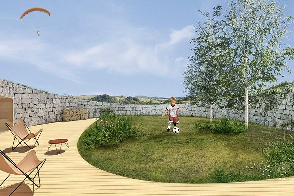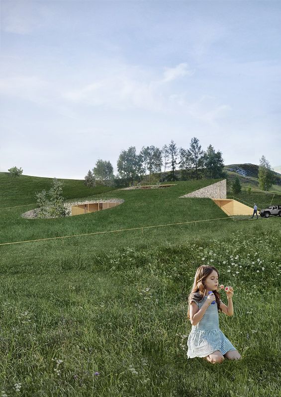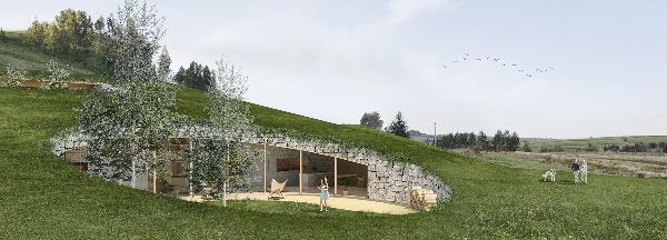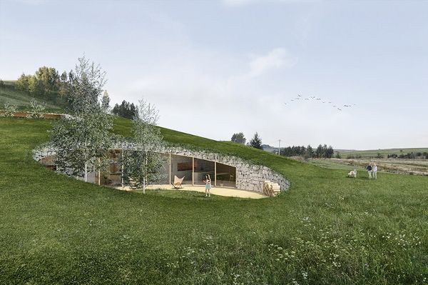 從山谷的西部和南部看去,Adrian Kasperski設計的建筑是看不見的,因為綠色的屋頂是根據自然的土地傾斜度調整的,與周圍的景觀非常吻合。現有的陡坡和已建墻之間的空間被回填,并用從基礎工程中獲得的土壤進行修整。使用本地材料(例如破碎的石灰石)強調了與環境的聯系,同時也考慮到了生態和經濟的因素,因為它大大減少了碳排放和整個建筑的成本。