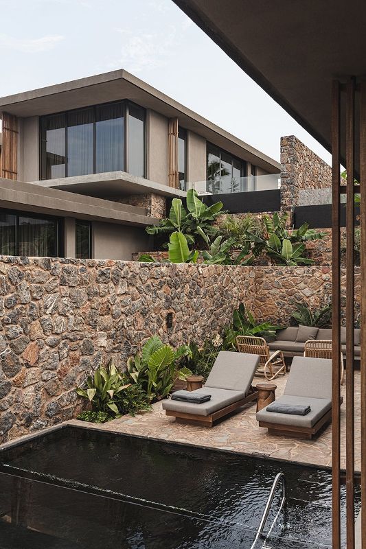由K-Studio和Lambs and Lions開發并設計的希臘度假勝地Casa Cook Chania每時每刻都在表達其現代主義的影響。從場地的最高點進入建筑,第一眼就看到了項目的全景和遼闊的大海,這番場景令人難忘。房間由光滑的混凝土和木材包裹的盒子組成,當沿著斜坡向海灘下降時,它們從當地石頭的浮動墻壁上保持平衡并伸出懸臂。每一棟別墅都是一個涼爽的、感官上的靜修場所,經過精心地布置,創造出雙面的內部空間,并延伸到私人的泳池露臺上,在其間,游客可以看到獨特的海景和郁郁蔥蔥的庭院花園。
