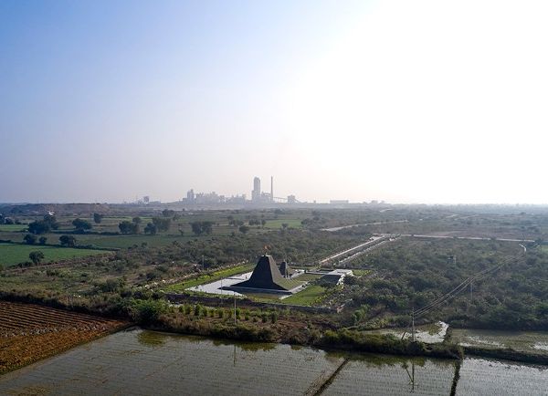 因此,從附近石灰石采石場溢出的水被引到一個低洼的補給坑。然后,設計團隊將這個場景的河岸想象成一個社交空間,類似于傳統的“ghat”——一段通向水體的臺階。建筑師們繼續說:“這種階梯式的水土保持是印度建筑遺產的重要組成部分,就像從古城貝納拉斯(瓦拉納西)的貧民窟里所看到的那樣?!?/P>