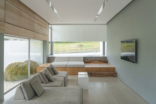 項目坐落于一塊300平米的場地上,Jim Caumeron設計的這棟全景住宅僅占場地空間這的三分之一。剩余的未建空間被設計成與室內產生聯系的花園,創造出令人愉悅的框景。白色體塊上的水平切口不僅起到窗戶的作用,還在夏季天氣非常炎熱的時候為通風創造了條件。由于地塊下沉1.5米,首層的生活區和餐飲區也隨之下沉。然后該空間向花園空間延伸,花園采用白色的鵝卵石鋪地,能夠反射出室內的光線。