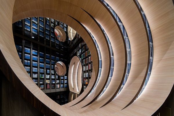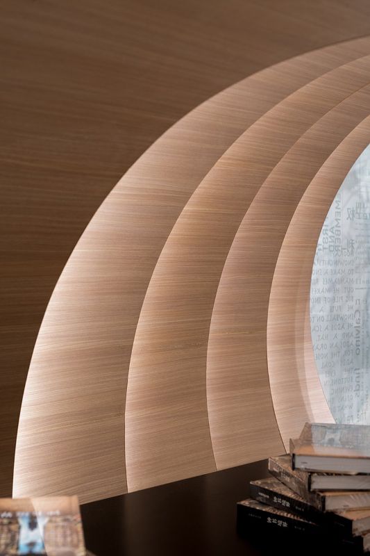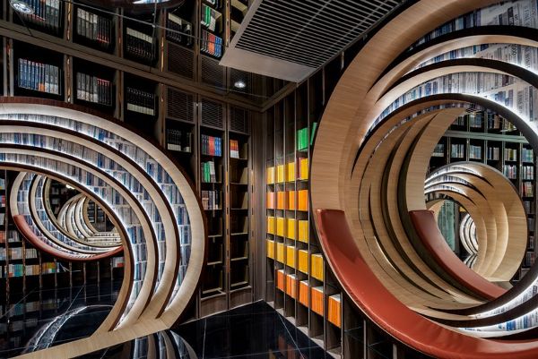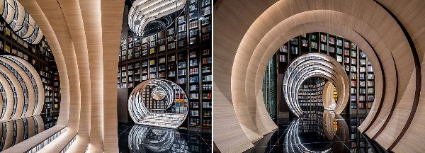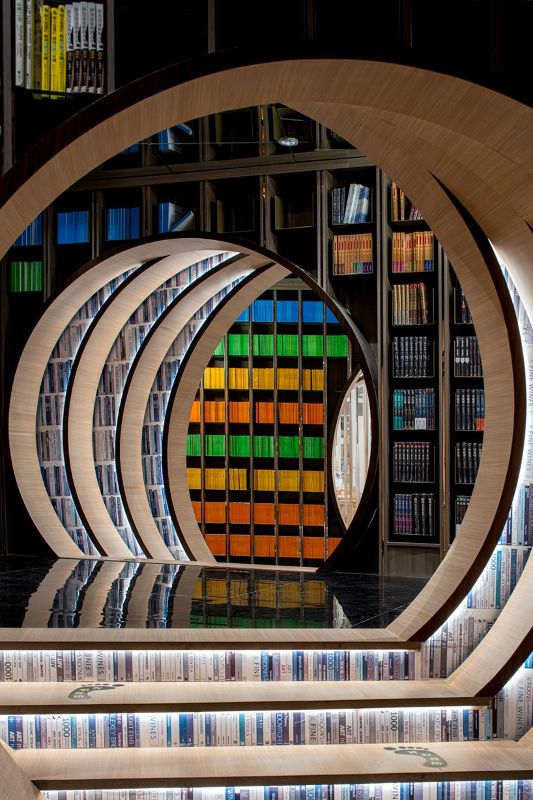 室內設計以書墻和圓形拱門為特色。受中國園林中傳統的“月門”的啟發,書店的不同區域通過這些大的圓形拱門相連,這些拱門不僅可以引導人們,而且可以為空間構圖。唯想國際利用拱形的造型,還設置了多個停靠點和可靜坐的地方,使象征性的拱門具有功能和美學的雙重意義。