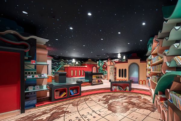 最后,兒童圖書館是為孩子們打造的獨特世界。唯想國際使用簡化的線條和圖形來創建一個卡通城市,并以波浪形表示水和生動的古建筑圖片。