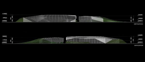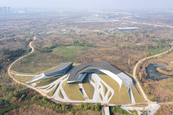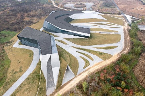 Plasma studio和PMA設計事務所設計了西咸新區崇文涇河生態餐廳及酒店,作為整個公園景觀中的焦點。建筑能夠和環境產生對話,這個項目讓人們感到一種基于當地特色的強烈的認同感。這些幾何圖形并不是從破壞傳統的形式中發展出的一種形象特征,而是通過在場地內的方位來確定的。建筑的邊界與整個景觀產生呼應,并通過拉長、編織的手法形成最后的形體。設計團隊說道:“無論是空間上還是功能上,它都重新定義了生態餐廳和酒店,并創造了一個新的環境。”