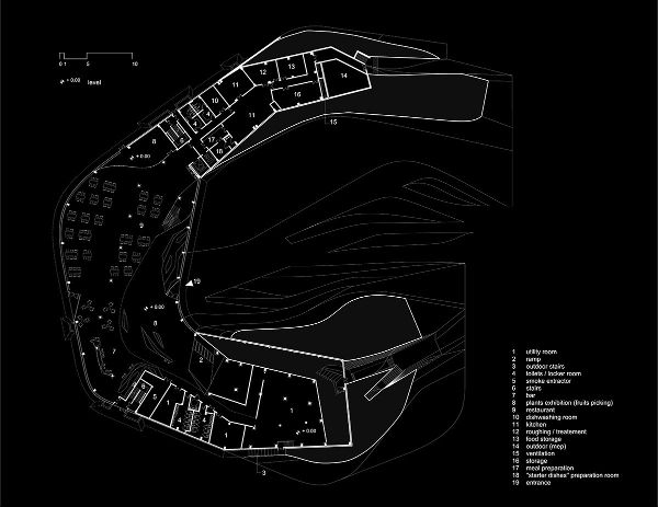 ?西咸新區崇文涇河生態餐廳及酒店通過其幾何結構和規劃與景觀進行對話。餐廳內設有一個水果和蔬菜“種植園”以及蝴蝶溫室,餐廳主要以現場生產和加工的簡單飯菜為主。這個地方提供了一整套體驗,游客可以自己挑選蔬菜,觀察烹飪過程。結合就餐體驗,該項目還提出了兒童游樂和溫室參觀等輔助活動,兩者都貫穿于餐廳的布局中。作為餐廳的配套,酒店由17間客房組成,每間客房都能俯瞰周圍的景觀。