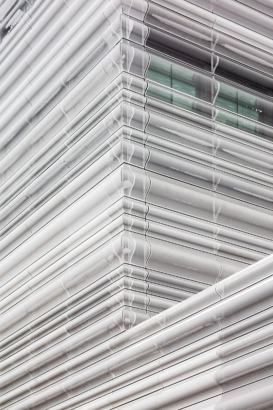 塔樓位于三層裙樓上,分為兩個主要區域:一個靜態區域和一個動態區域。靜態區域是封閉的混凝土結構,符合嚴格的安全性、濕度和日光要求,以保護其中的藝術品。動態區有一個開放、透明的立面,可以俯瞰整個城市,游客可以在不同的展區之間穿梭。