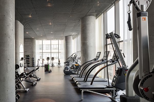 除了倫納德56號住宅獨特的外觀,赫爾佐格&德梅隆也對建筑內部進行了設計,其中包括17000平方英尺的私人休閑空間。一個混凝土雕塑樓梯加入了該方案兩個層次地設施,連接塔樓的第九層和第十層。居民設施包括75英尺的游泳池和毗鄰的室外太陽甲板和熱水浴缸,以及一個配有瑜伽室,蒸汽浴室和理療室的健身中心。