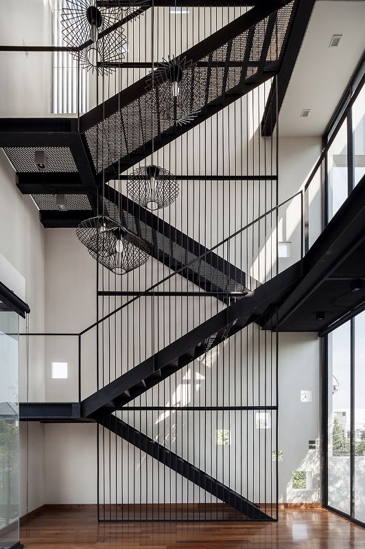 所有的功能都被組織起來,并且被隱藏在矩形外殼的外部。外圍護(hù)結(jié)構(gòu)的連續(xù)性,完成了具有最大空隙的規(guī)則幾何建筑形式,展示了寬敞的縱向空間,成為房屋的主要焦點(diǎn)。 臥室和起居室分布在前三層,并配有一個(gè)連接到攝影師的暗室的屋頂露臺(tái)。