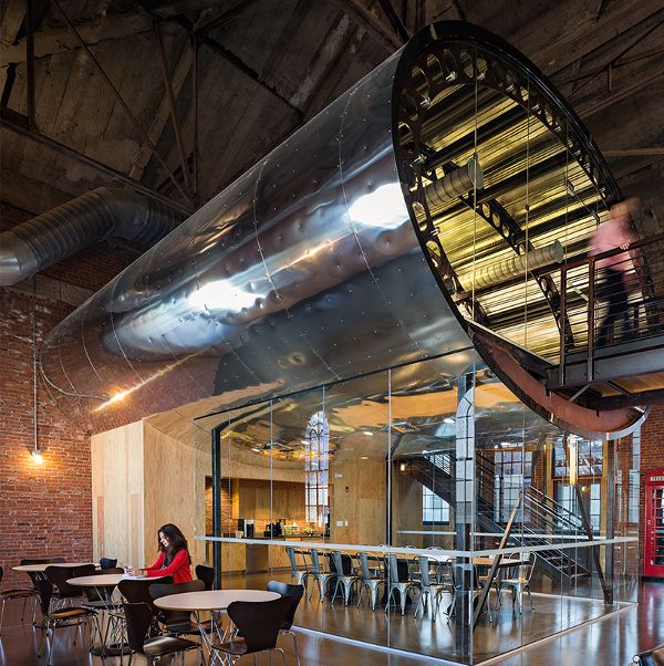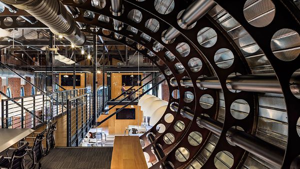 這個建筑由Beinfield建筑事務所設計完成,建筑師采用了保留原有的結構所留下的華麗細節的方法來改造和適應好像倉庫一般的空間。 暴露的磚,金屬和桁架已經處于他們的原始的狀態,新的辦公室由金屬和玻璃構成。