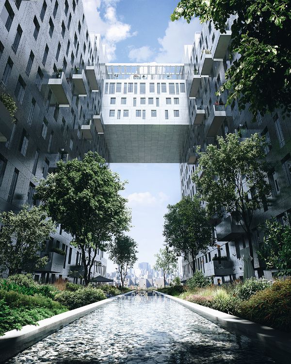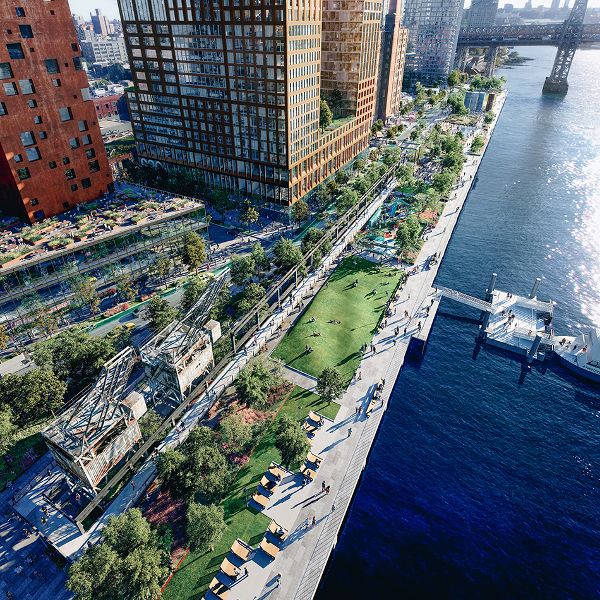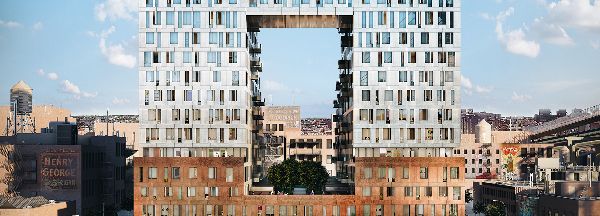 由兩個樹木管理部門開發(fā)完善,SHOP建筑師設(shè)計的16層樓結(jié)構(gòu)包括522套公寓 - 其中104套被視為是低收入居民所“負擔(dān)得起”的公寓。 租賃的單位被準備好,圍繞高層的庭院引人注目的開放安排。 透過窗框縫隙可以看到相鄰公園,東河和曼哈頓天際線的景色。 在建筑物的后部,有階梯的單位幫助銜接現(xiàn)有的鄰里和目前正在建設(shè)中的較高的濱水區(qū)。