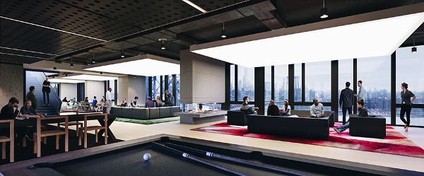 在其較低的的樓層上面有一個鍍銅的鋅外墻在上面,有325肯特提供的臥室,臥室,家庭辦公室,以及兩間臥室。 該建筑最引以為榮之處在于擁有11,300平方英尺的便利設(shè)施,還包括一個7,000平方英尺的屋頂甲板。 該綜合體還設(shè)有健身俱樂部,自行車存放處,居民休息室,臺球桌,壁爐以及餐飲廚房。