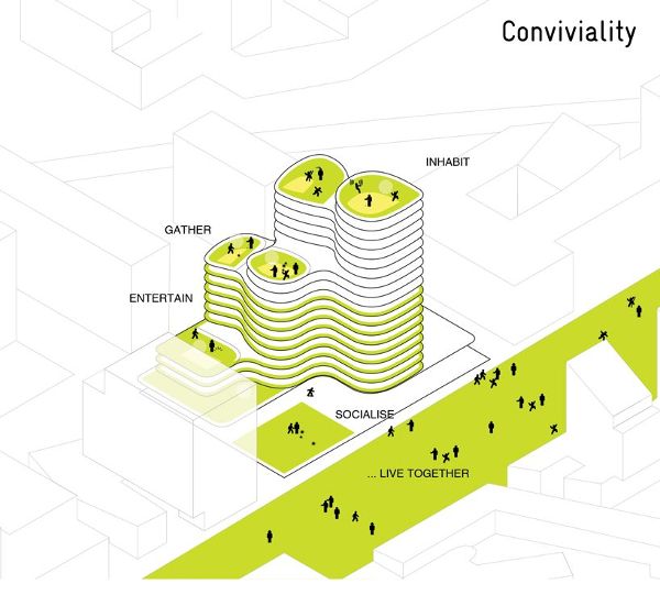 中間高度的建筑具有教學作用,住在這里的人們可以理解和欣賞周圍的城市。