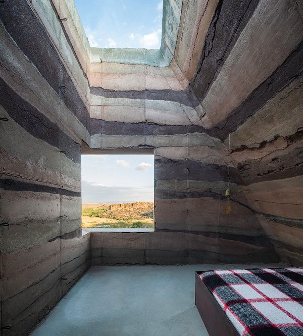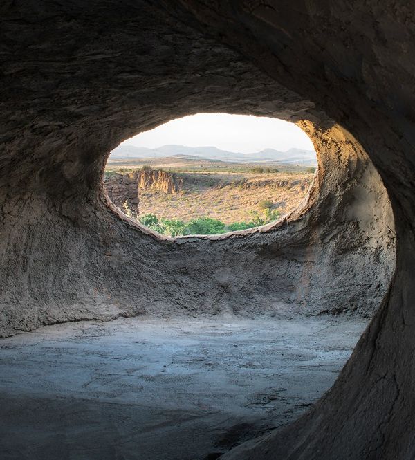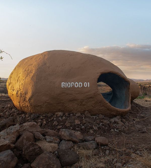 Solomon Edelman設(shè)計的 "biopod 01 "庇護所旨在探索在生物形態(tài)建筑中生活的舒適度和滿意度,"生物形態(tài) "是指基于生物系統(tǒng)的設(shè)計,并在物理上與之相似。緊貼地面的結(jié)構(gòu)避免了使用任何尖銳的角落,而是選擇了柔和的曲線。坐和睡的空間被整合在薄殼混凝土系統(tǒng)中。橢圓形的開口提供了進入體量的通道,框住了遠處景觀的視野,并允許交叉通風(fēng)。該項目在當?shù)氐莫毺亟ㄖ纳拌T穹頂和混凝土拱頂中最為舒適。