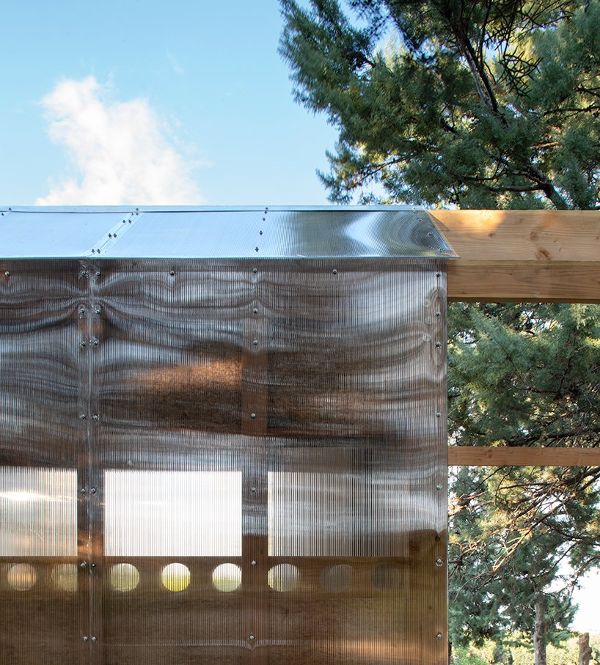 Michele Yeeles的 "Shiro "庇護所,作為學(xué)校和Arcosanti農(nóng)業(yè)項目之間的共享結(jié)構(gòu),探索了通過使用生物材料將建筑對環(huán)境的不利影響降至最低的材料。Yeele采用了菌絲體,即蘑菇的根部網(wǎng)絡(luò),并在模具中培育出這種材料來制造厚厚的絕緣板。這種生長出來的材料隨后被放置在墻體框架內(nèi),用一種純生物的類似物取代了傳統(tǒng)的絕緣材料。最終,這個結(jié)構(gòu)作為一種基礎(chǔ)設(shè)施,用于生長、實施和展示菌絲體,作為當今許多工程合成和通常有毒的建筑材料的可行替代品。