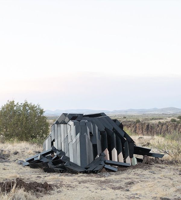 阿茲里安-伊薩克通過Arch-i-part庇護所的建設(shè),探索了一種部件套件的方法,允許人們在建造結(jié)構(gòu)時進行重新配置。這些部件非常類似于晶體或礦物;它們的長度從18英寸到4英尺不等,截面呈三角形。它們組合在一起形成一個外殼,并通過隱蔽的摩擦式緊固件相互連接。它們由硬質(zhì)泡沫塑料制成,并涂有為卡車床襯里開發(fā)的環(huán)氧樹脂涂層,重量輕,可即興發(fā)揮,并易于組裝成各種配置。這個項目闡述了通過自下而上的過程和最小的部件集來預(yù)制建筑部件的可能性。