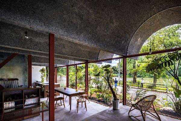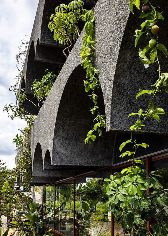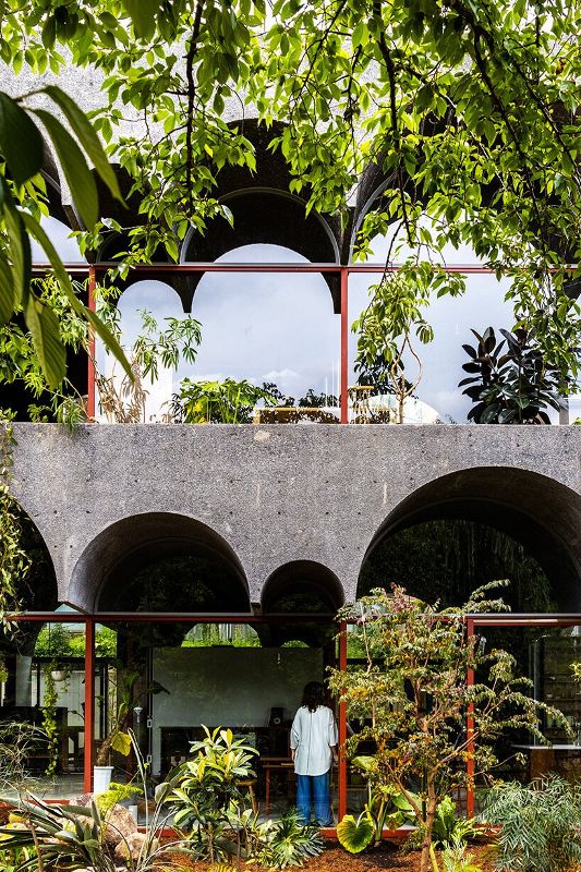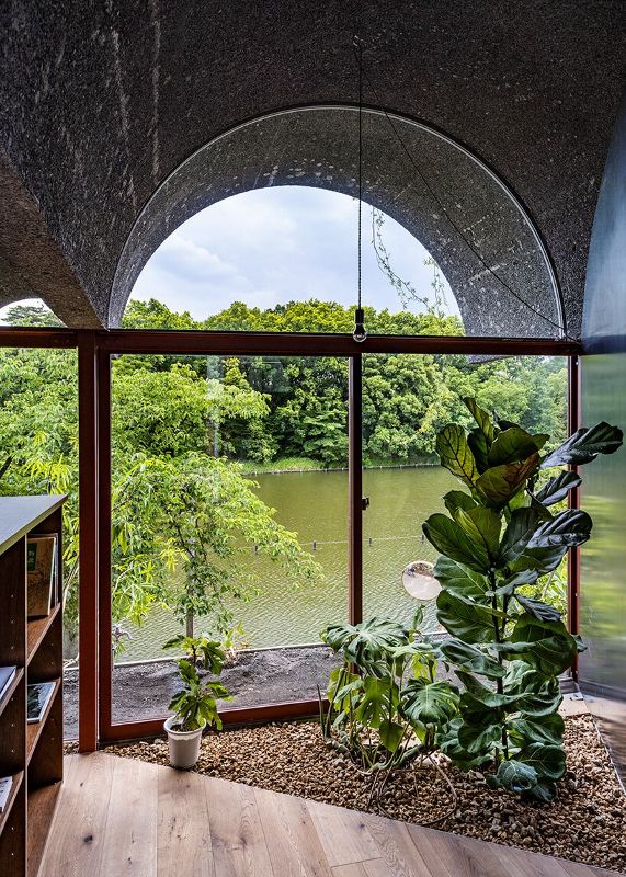 由kiyoaki takeda architects設計的 "tsuruoka "住宅作為一個容器,位于在日本Intokyo的一片綠地上,不僅可以容納人類,還可以容納各種生物體。建筑產生了一個連續排列的拱頂,形成一個涼爽的洞穴般的環境,同時與自然環境相融合,歡迎植物、昆蟲和小動物進入。郁郁蔥蔥的花園區域被分配在建筑周圍和頂部,向附近的河流開放。