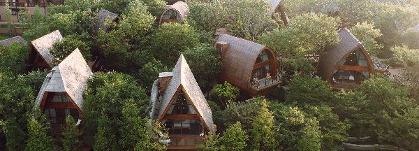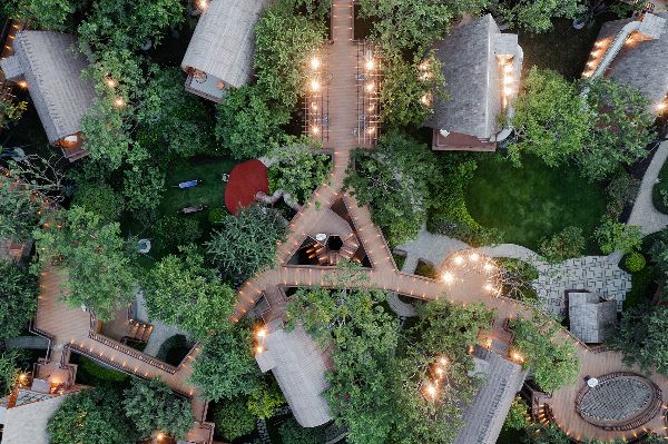 酒店通過浮動的木板路連接,其中包括滑梯、吊索和其他娛樂設施。這些道路也通向地面花園和休閑空間,可以在樹梢間凝視和放松。