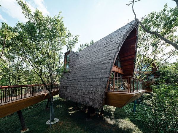 AOE建筑師評論說:“酒店的歷史可以追溯到古代文明,。它是具有廣闊視野和實用性的庇護所,同時避免了危險。我們將這一概念應用到項目中,使游客能夠與自然有更密切的聯系。高架建筑輕盈有趣,可以擁有最廣闊的視野。同時,樹屋的高度與樹冠一致。從窗戶向外看,有茂密的樹木,給人以穿梭于叢林的體驗?!?/P>