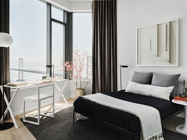 MIRA全景公寓的單元樓是由French CALIFORNIA的創始人Guillaume Coutheillas設計而成的,每座單元樓的天花板都高達12英尺。廚房和浴室景觀絕美,飾面別致,飾品均為手工制作,極致奢華。比方說,白色大理石臺面延展的瀑布島和寬敞的淋浴間。珍妮·甘建筑事務所設計的公寓樓平面圖靈活開放,所以其中的社交空間十分寬大。這20套住宅的所在位置都很寬敞,可以270度視角觀賞舊金山和海灣的美景。在策劃空間靈活的三居室時,設計團隊力求在展現富麗堂皇的同時給人一種優雅溫馨的感覺。