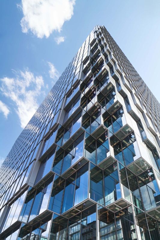 該建筑被描述為 "內(nèi)向型",因為雕刻出來的角落將人們引向一個六層的中庭。這個高聳的空間加強了內(nèi)部/外部的視覺聯(lián)系,并將自然光帶到了與該地區(qū)的地下人行道、零售和交通網(wǎng)絡相連的低層大廳。