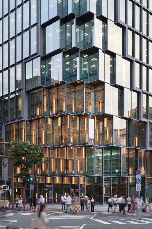 商務中心占據(jù)了兩個主要軸線交匯處的一個角落:明治大道--這個城市既定的商業(yè)大道,兩旁都是金融辦公室;稻田町大道--一條有機的步行走廊,與市政廳廣場和畫廊相連,兩旁都是親密的咖啡館。該地塊還連接到一個地下地鐵站和購物大廳。為了呼應這兩條主要街道的交匯點,建筑師決定將建筑的一角鑿開,創(chuàng)造一個像素化的效果,同時揭示辦公室的內(nèi)部活動,并在新的入口廣場上吸引公眾活動。