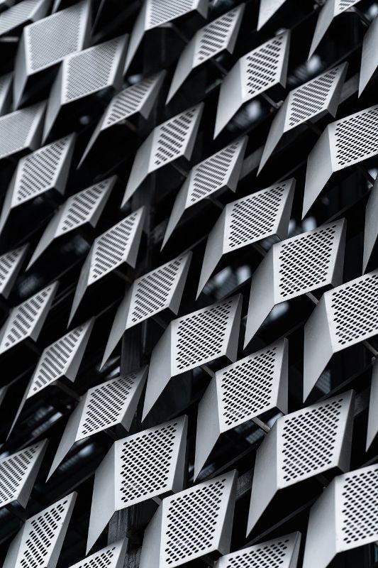 坐落在山頂上的三層玻璃體量包裹著一個輕質的屏風式立面。遮光的立面覆蓋著有角度的穿孔金屬板,以捕捉和反射光線,創造一種起伏運動的感覺。這些板通過一個輕型鋼骨架連接到主體結構上,有助于開闊視野,并平衡開放與隱私的感覺。