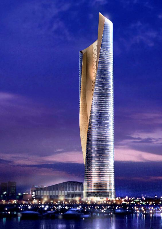 哈姆拉菲爾杜斯大廈位于科威特城的中心區域,高412m,是一座地標性的高層建筑,擁有標志性的雕塑形式,在這里可以欣賞到阿拉伯灣的壯觀美景。建筑形式的純粹性,通過簡單的切除設計表達出來,使之在科威特的中心成了一個永恒的優雅標志。