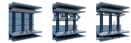 由于對實體大樓的精心"雕鑿"設計,大京都大廈顯著的雕塑形象呈現出一種像素化效果(馬賽克效果)。從光潔而高雅的玻璃幕墻鑿出的盤旋而上的開敞空間展示出大樓內在的生活;相應地,大樓通過這個方式保護著里面的使用者,并向其展現出他們城市的內在生活。優雅伸出的陽臺在給城市提供更多綠色的同時,也為居住者提供了一覽無余的城市景觀。