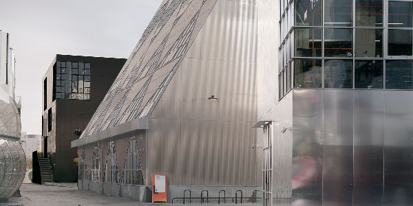 Barozzi Veiga設(shè)計了一對鋁制建筑,位于倫敦格林威治半島的一個占地一公頃的新社區(qū),建筑的功能是創(chuàng)意企業(yè)交易、互動和發(fā)展的永久基地。這家西班牙公司是歐洲八家新興建筑事務(wù)所之一,他們在這個致力于設(shè)計、藝術(shù)、科技、工藝和音樂的新社區(qū)中各自獨(dú)立設(shè)計一對建筑,并且相互“視而不見”。