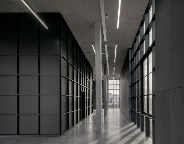 巴羅茲-維加在設(shè)計區(qū)的兩座建筑與藝術(shù)家工作室的想象相呼應(yīng)。這兩座建筑的設(shè)計都考慮到了攝影師、藝術(shù)家和雕塑家,強(qiáng)調(diào)在一個由大窗戶、雙層高的房間、外部樓梯和原始材料定義的工作空間中對光線的利用。位于入口處的A1是第一個體量,作為大學(xué)建筑。憑借其拋光的鋁制外觀,該建筑吸引了來自遠(yuǎn)近的游客。外墻的光線反射在一天中不斷變化,使其在每個季節(jié)都顯得不同,并使其照亮周圍的庭院和小巷。同時,D4是NOW畫廊的所在地,位于場地的中央廣場,具有一個細(xì)長的黑色外墻。