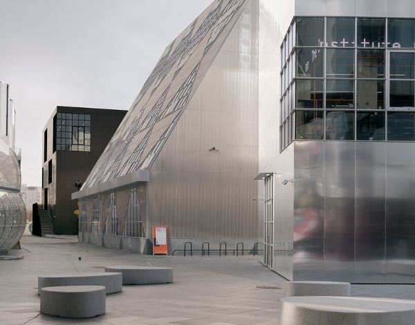 巴羅茲-維加在設計區的兩座建筑與藝術家工作室的想象相呼應。這兩座建筑的設計都考慮到了攝影師、藝術家和雕塑家,強調在一個由大窗戶、雙層高的房間、外部樓梯和原始材料定義的工作空間中對光線的利用。位于入口處的A1是第一個體量,作為大學建筑。憑借其拋光的鋁制外觀,該建筑吸引了來自遠近的游客。外墻的光線反射在一天中不斷變化,使其在每個季節都顯得不同,并使其照亮周圍的庭院和小巷。同時,D4是NOW畫廊的所在地,位于場地的中央廣場,具有一個細長的黑色外墻。