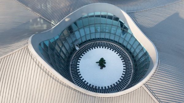 總部位于上海和臺北的建筑公司CROX,完成了中國杭州的納貝爾瓷磚公司總部。該團隊從該地區的歷史背景和地形中汲取元素,設計了流動山形屋頂為特征的品牌文化展示廳。